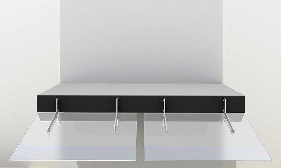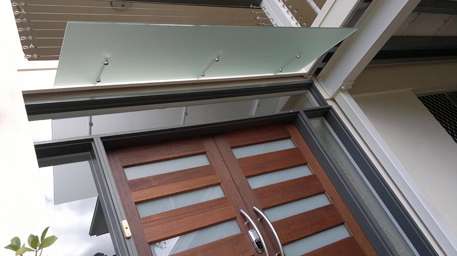 The X1-Series Fascia Fixed Awning incorporates stanchions which fix to the face of the balcony structure, whether it be the concrete slab edge or lightweight framing, and extend, at an angle, below the floor level to support the awning panel. This panel with translucent or tinted glass can be used to reduce the amount of direct light and heat entering the lower level as well as providing a level of privacy screening.