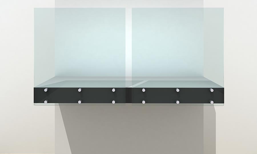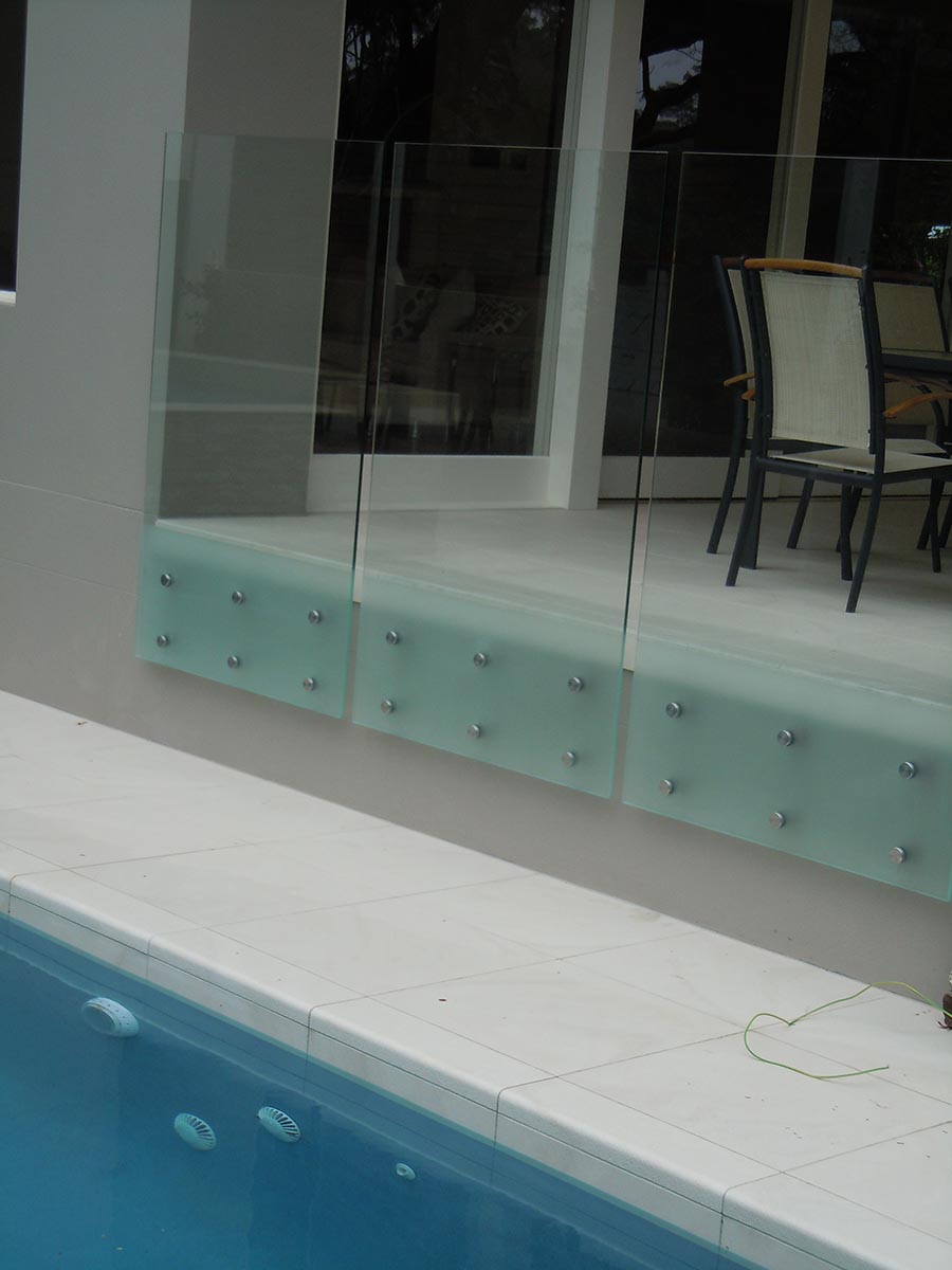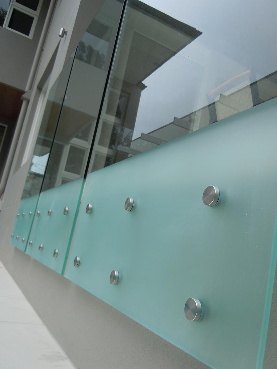Supports: Stainless steel pin supports sized by manufacturers engineer to each glass panel and fascia fixed to substructure.