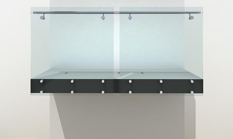 Supports: Stainless steel supports sized by manufacturers engineer to each glass panel and fascia fixed to substructure.