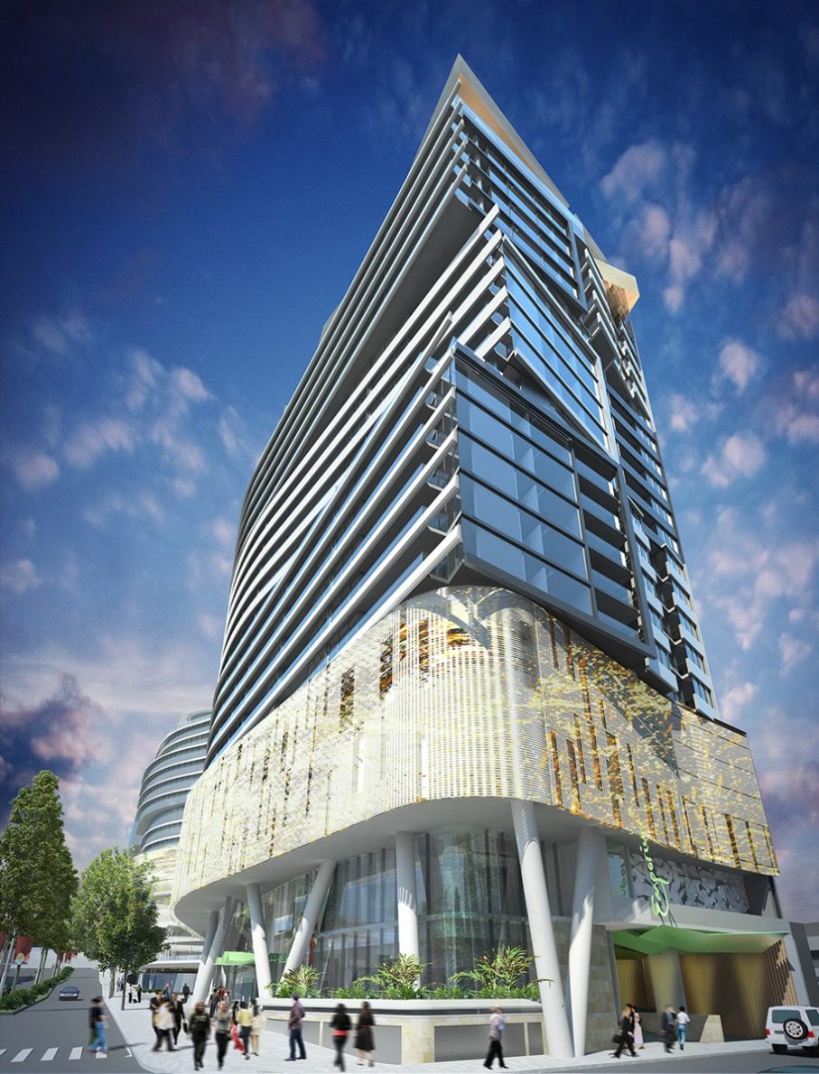 Located on the corner of Grey and Vulture Streets, the 21-level transit-oriented development has a gross floor area of 48,000 square metres comprising 24,000 square metres (NLA) of A-Grade commercial office space, 3,000 square metres of ground floor retail and dining, a gymnasium and basement parking.